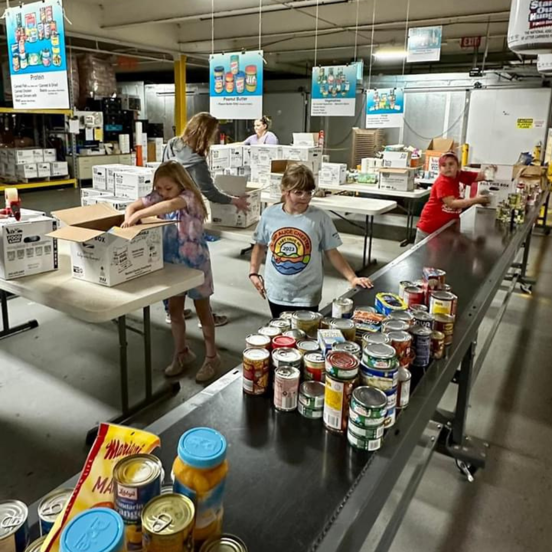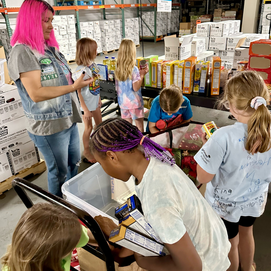 The Girl Scouts created posters asking for food donations that were hung around the community and coordinated large collection bins to put in the local golf course lobby and Olympia Brown Elementary School. The girls soon experienced the ripple effect of their good deed—support that started with their troop soon spread to their local driving range, school, surrounding coffee shops, the Caledonia Community Group, and more—and over six weeks the troop was able to collect 1,000 pounds of nonperishable protein, fruit, and veggies for the Racine County Food Bank (RCFB).