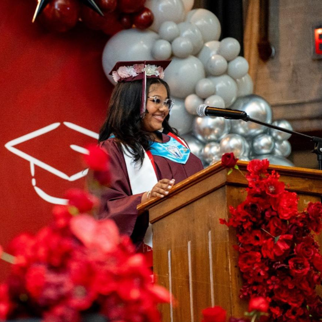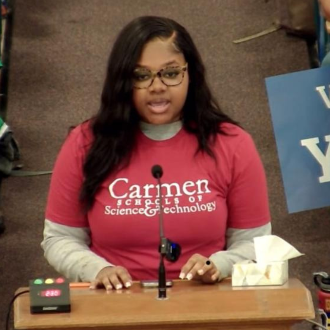 Nia also had opportunities to speak in front of crowds as a Girl Scout, which helped sharpen her public speaking skills. Those skills have served her well. During her senior year, Nia was part of a small group of students selected to speak at an influential school board meeting.