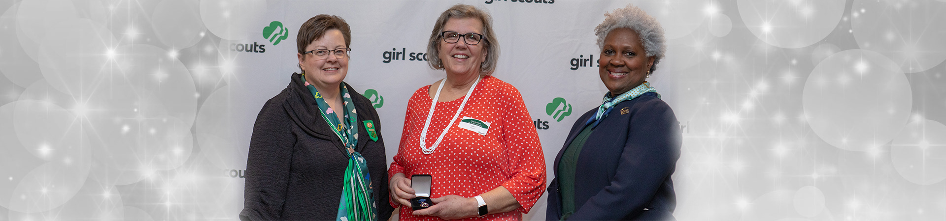 The Thanks Badge honors an individual whose ongoing commitment, leadership, and service have had an exceptional, measurable impact on meeting the mission-delivery goals and priorities of the entire council or the Girl Scout movement.